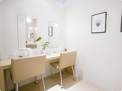 お帰りの際のメイク直しはパウダールームをご利用ください。