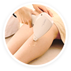 コンタクトクーリングで皮膚を連続冷却することにより痛みが軽減されます。狭い範囲やうぶ毛、軟毛にも効果的です。